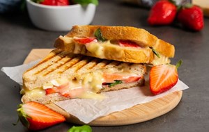 Grillet Lantgoda Surdeigsbrød med friske jordbær og brie